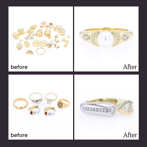 The pure gold from your old jewelry can then be turned into any karat like 14K, 18K, 22K and any color such as yellow, white, rose or even green gold! That means you can have a custom jewelry project created for you with your sentimental family jewelry.