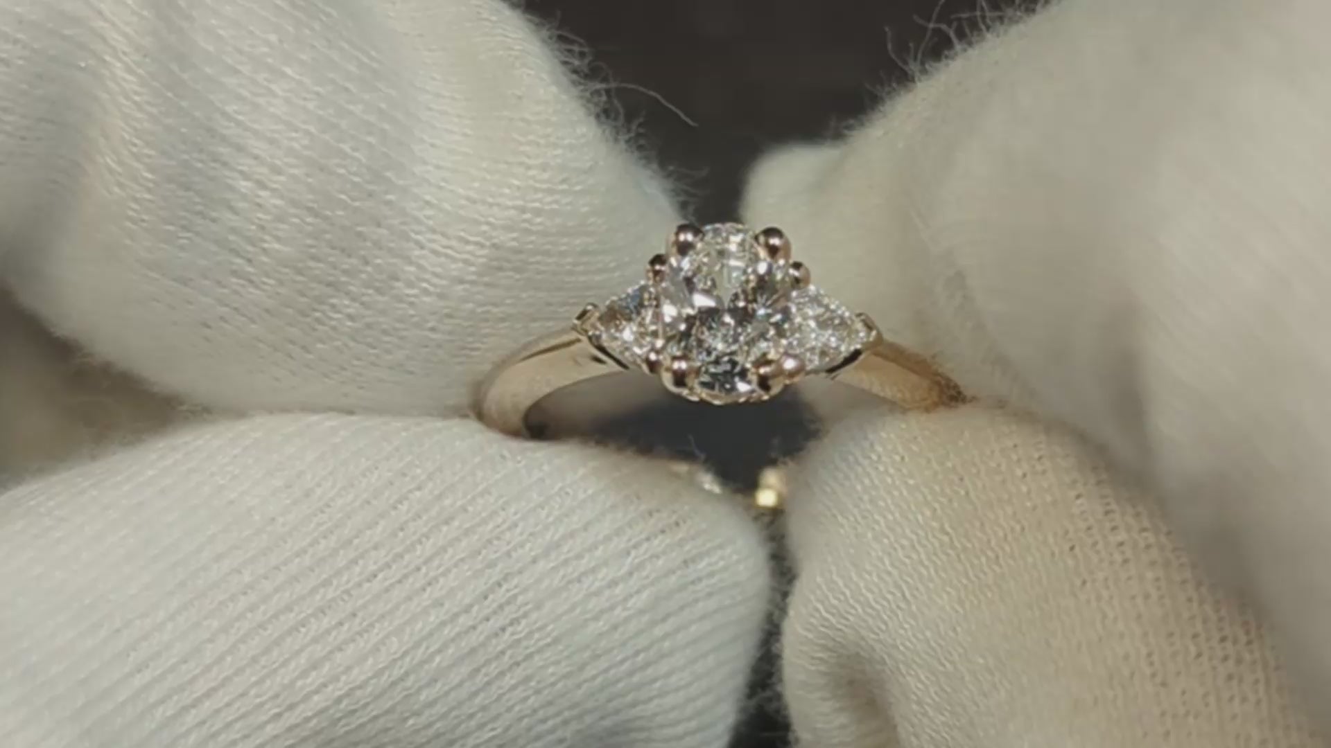 Oval and Trillion Diamond 3-Stone Engagement Ring 14KW